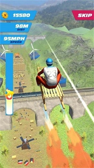 3、点击屏幕进行准备动作,在斜坡上去之后要飞跃的瞬间松开,提高力度。