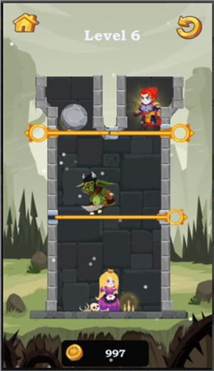 1.体验解谜过关的不同的难度,经典的拉针玩法让玩家的大脑一直在转动,必须先过怪兽的地方才可以去到最后的位置;