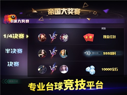 3、看看谁才是真正的台球达人,多种竞技模式自由选择,与好友一较高下。