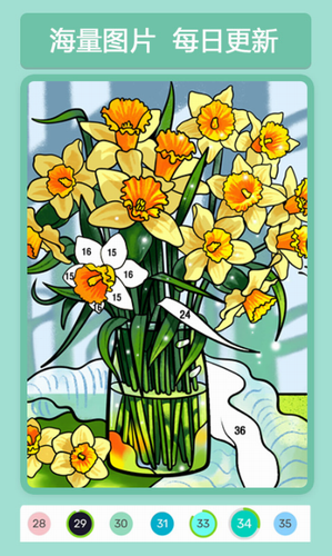 2、海量精美图片CG任你选择一张,然后顺着数字一步步的去填充不同颜色。
