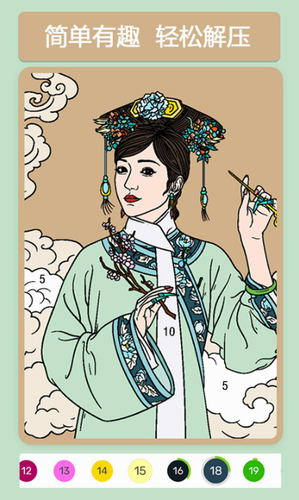 4、使用简捷:简单的依据调色盘的色号来进行涂色,涂完一个色号后调色盘会显示已涂色完成。