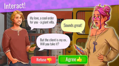 3、沉浸在互动故事中,与客户、朋友和熟人建立关系。选择您自己的沟通策略,这将引导您获得最有趣和最复杂的室内设计订单。