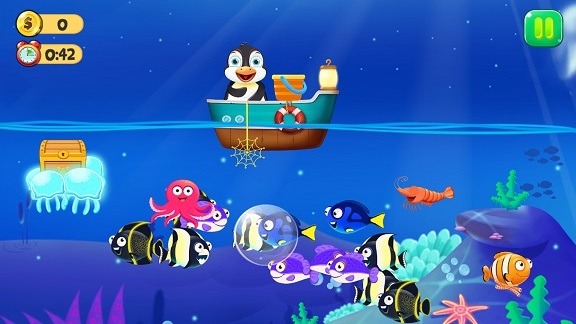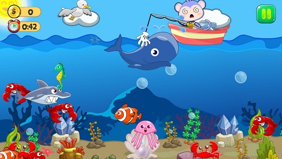 2、更有精彩刺激的渔网捕捞环节,将成群结队的鱼儿们一网打尽吧!