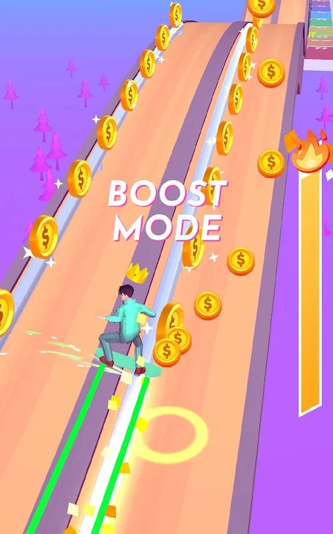 3、一款全新的滑板竞速休闲手机游戏,搭配跑酷,踩着你的滑板在弯曲的跑道上奔跑。
