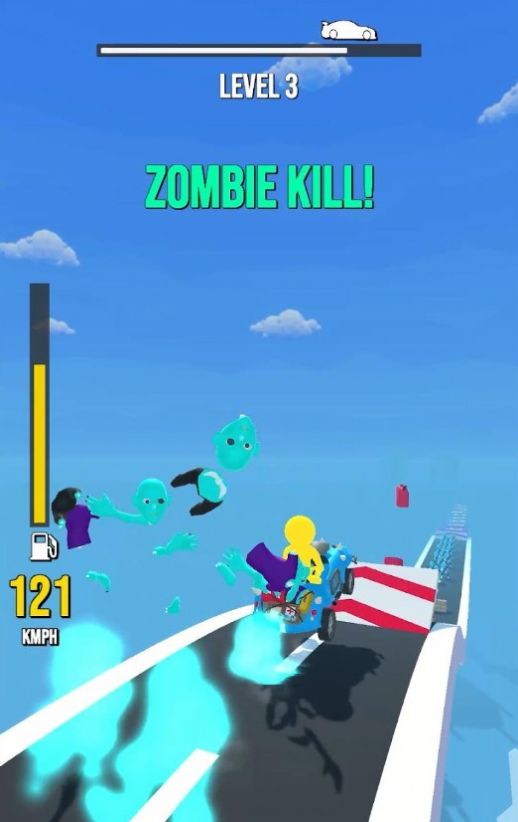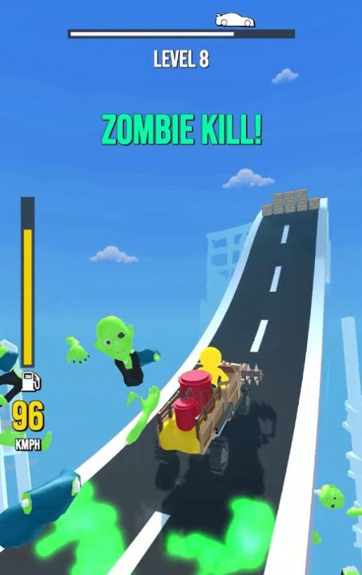 2、好在道路上有很多的汽油,收集它们,继续碾压僵尸,直到直到终点。