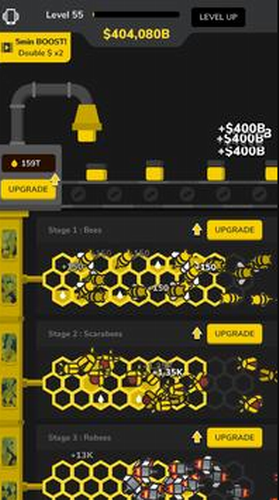 3、然后获得蜂蜜,本游戏的通币,雇佣新蜜蜂,提升生产设备