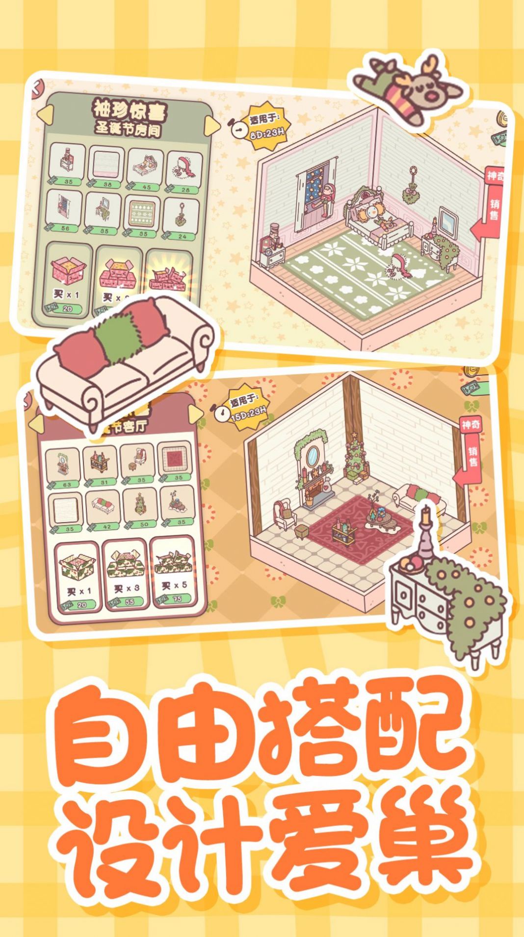 2、设计自己的梦想之家,挑选喜欢的家具,和伴侣萌宠体验温馨生活。