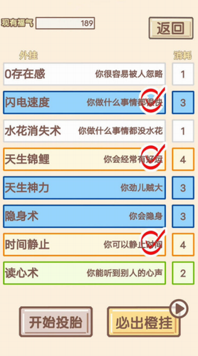 2、开局进行外挂选择,挑选3个你想要的外挂,开始你的外挂人生。