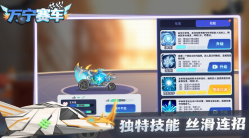 3.每一个车都可以通过卡牌套件来升级车辆属性,其中包括最大速度、加速度、氮气推进、操控性四种