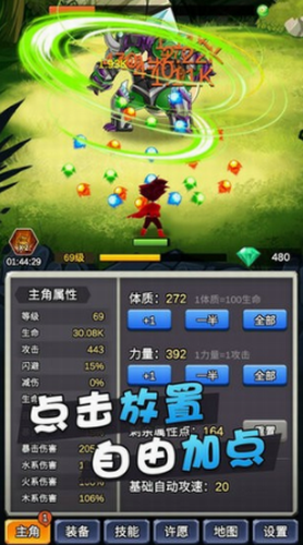 2. 点击放置玩法,以刷装备为核心,随着装备越来越好,游戏玩起来将会越来越痛快,刷刷刷根本停不下来。