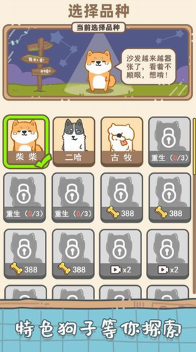 2、重开狗生的玩法新颖而有趣,游戏里的狗狗种类十分丰富。