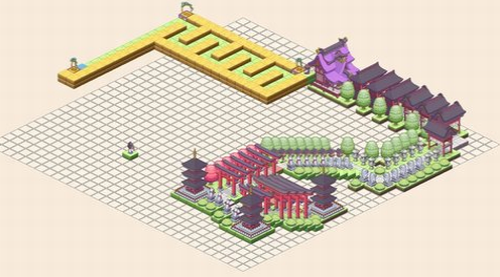 1、游戏的画面像素风格,让游戏的自由度大大提升,各种像素方块任由玩家放置,构造一个美丽的神社!