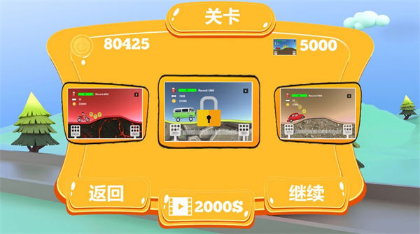 空中越野大挑战游戏是一款玩法刺激的驾驶冒险题材的竞速类的游戏,游戏中你可以在这里进行精彩的冒险竞速,玩起来非常不错,选择好喜欢的小车和模式后就可以开启挑战了,游戏中的场景地图也是很丰富,玩起来超棒的。