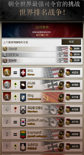 4、依据战斗胜败,可能会获得或失去排名分数。在争取全世界最强司令官的激烈战斗中,与全世界玩家一较高下吧!