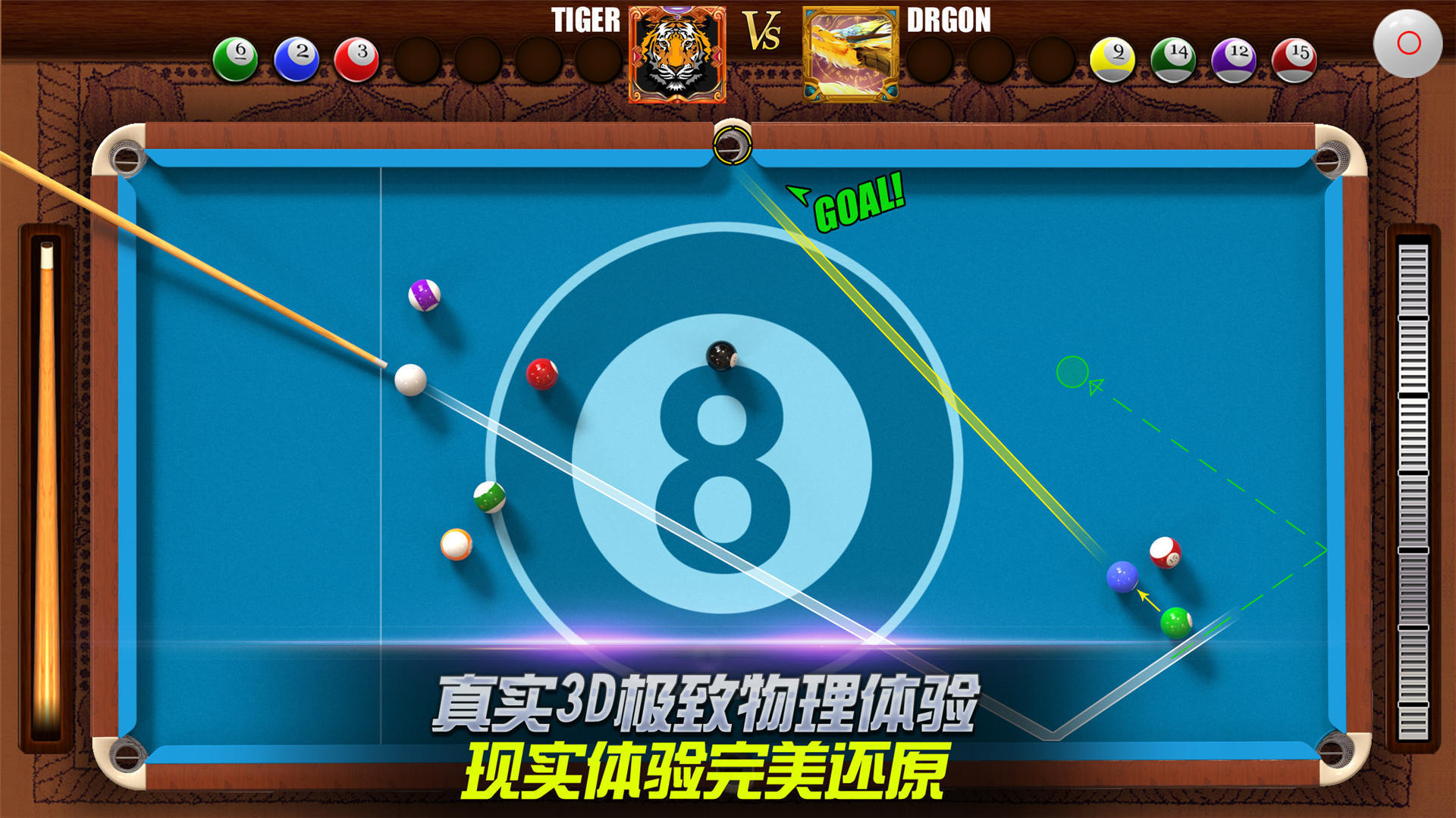 还原现实桌球玩法,配以真实物理参数,让广大桌球爱好者玩的得心应手,杆精利落。