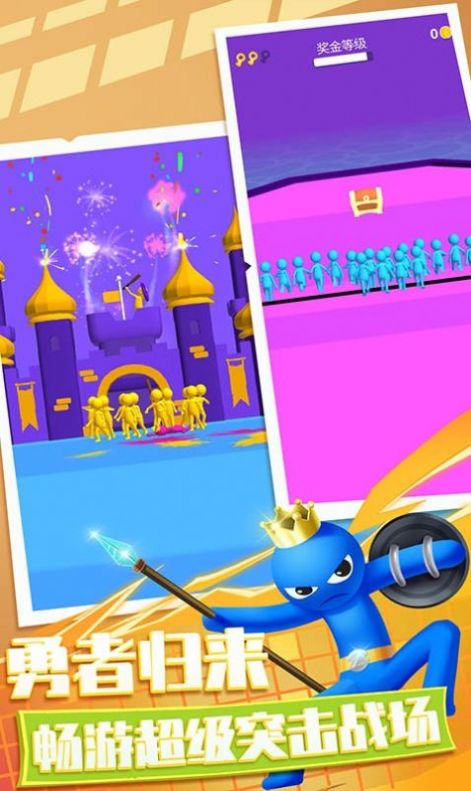 3、小人越多,你的战斗力就会越强,完成的关卡就可以不断的增加,获得奖励;
