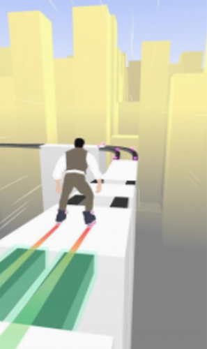 2、随着关卡越来越多,障碍物出现的越来越快。中途会出现加速带,把握好,快速通关。