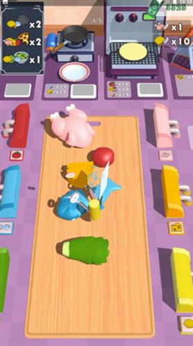 3、各种不同的食物你需要去进行切割,只有满足客人的需求,才可以完成挑战;