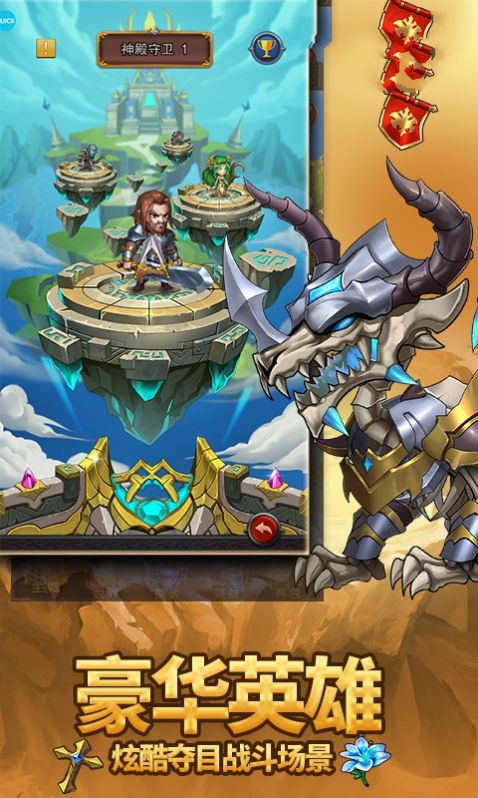 4.挑战难度不断提升,强化你的阵容,招募英雄角色加入战斗。