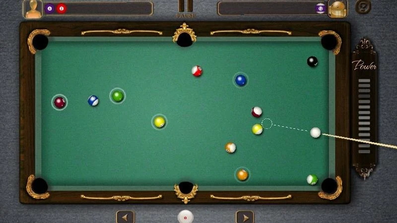 2.只需要调整角度,用你认为合适的力量击打白球。很简单。