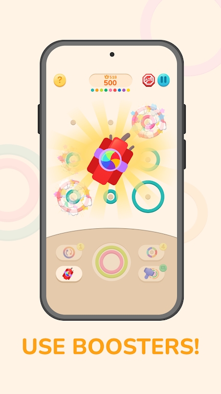 2、一旦你在垂直、水平或对角线上填充相同颜色的戒指,它们就会消失,为新戒指腾出空间。
