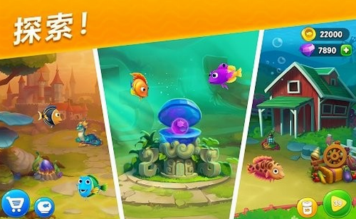 2、探索惊险刺激的水下世界,水里的每条逗趣3D鱼都有自己的个性。