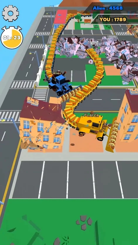 1、一款你必须摧毁建筑物,增加收割机长度,并在挑战中摧毁对手的游戏;