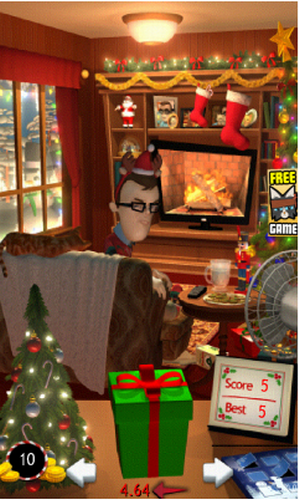 1、整个游戏的画面是浓浓的圣诞风,飘舞的雪花,大红色的圣诞袜;