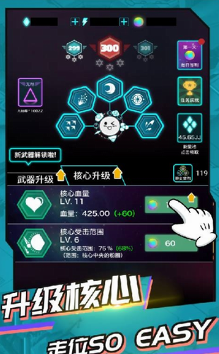 2.真实的三角形冒险,以及独特圆球不断攻击敌方核心.
