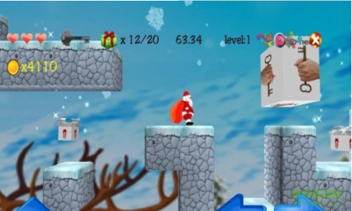 4、来帮助圣诞老人完成他的工作吧!操控圣诞老人进行跳跃,躲避障碍物,收集糖果,给孩子们送去温馨的圣诞礼物!