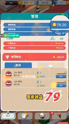 1.开局就给一间小套房,通过给房间进行装饰,然后客人也会相应多给租金;