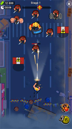1、玩家在开始时持有普通单发步枪,可以向八个方向发射。