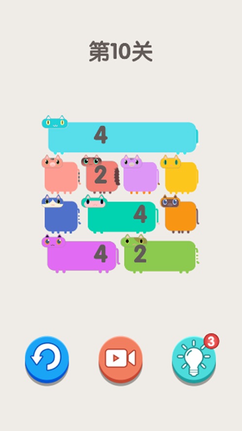 1、玩家需要按照数字要求来合成相应的方块数量,达成条件就能获得一只小猫;