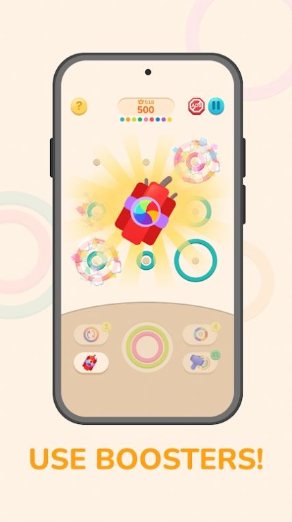 2、需要将不一样颜色的圆环,然后一个颜色进行分类,考验眼力和智慧