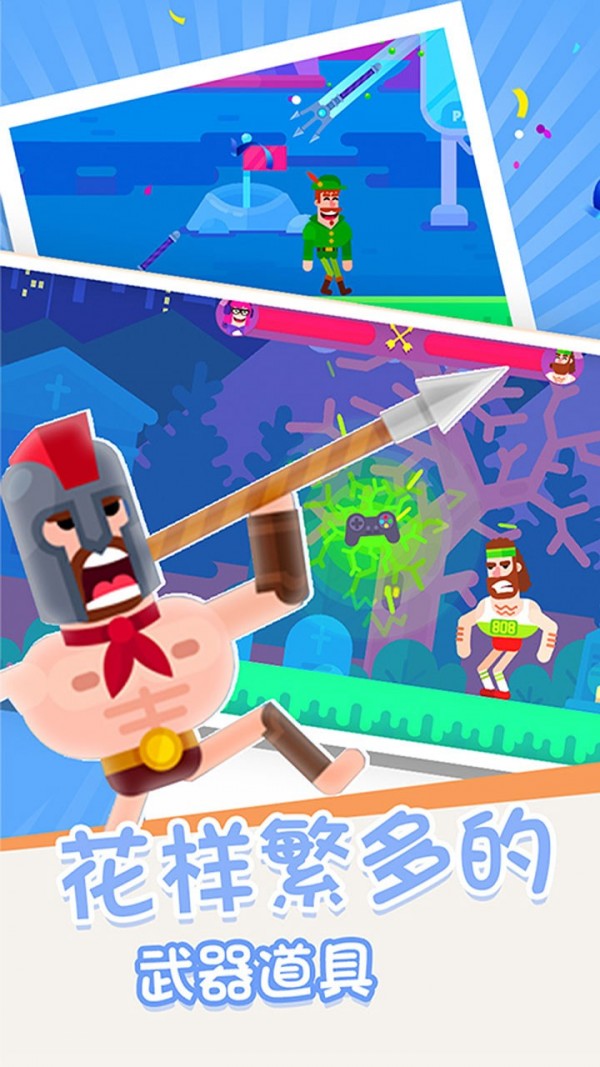 1、游戏中有着非常多可爱有趣的角色皮肤和有趣繁多的武器道具等着玩家来解锁,选择更适合你的人物武器,来上一场箭无虚发的挑战吧!