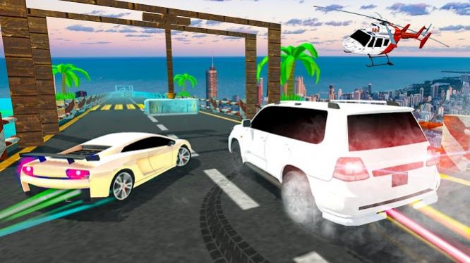 2.进入赛道和惊人坡道。不可能的赛道上的GT疯狂汽车特技让您享受极限SUV汽车特技的乐趣。