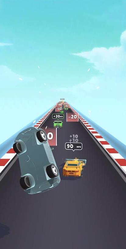 2、每铲翻一辆就会获得相应的积分,但是要尽量躲避赛道上的减分通道。