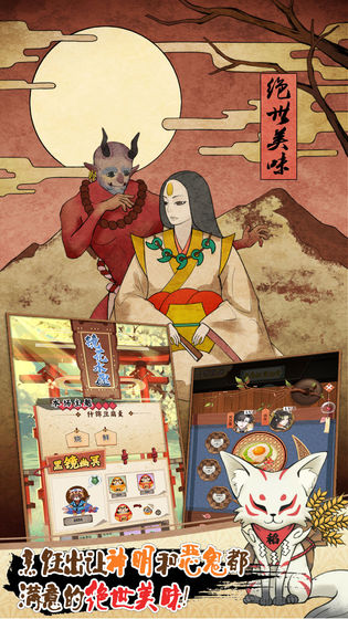 1.是一款美食题材的浮世绘和风卡牌游戏,策略回合制战斗。