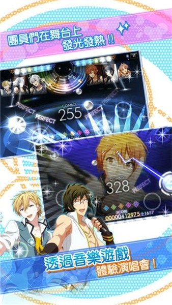 1、按照手指的节奏来节奏,只需用歌曲点击屏幕,控制偶像来达成任务,容易明了的操作正统的手游节奏。