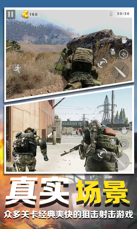 3、顶级的作战方式,消灭更多的敌人,完成更多的关卡任务,成为顶级的特工狙击手。