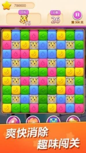 3、轻松滑动屏幕即可带来无限乐趣,玩法简单易上手,5种超级诱人的糖果,陪你一起闯关。