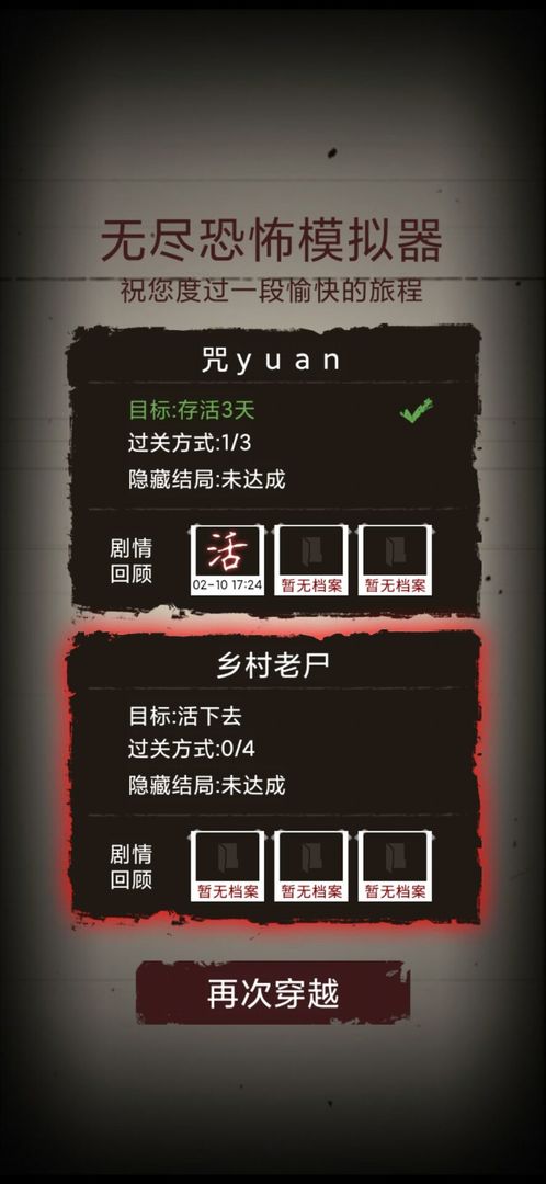 无尽恐怖模拟器内测版是一款有趣的恐怖解谜类手游。手游中小伙伴将以穿越者的身份,亲身经历各类诡异剧情,探寻烧脑的过关技巧,改写彩蛋结局,达成你的逃脱考验。