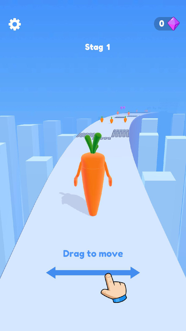 萝卜人快冲游戏是一款非常有趣的跑酷闯关游戏。故事的主角是一根胡萝卜,它正在充满危险的赛道上奔跑着,只有以最快的速度和最重的分量抵达终点才能获得更多的奖励,但是赛道上的刨刀部分会削去胡萝卜的重量,请一边收集足够多的小胡萝卜一边尽量避开刨刀冲刺向终点吧!