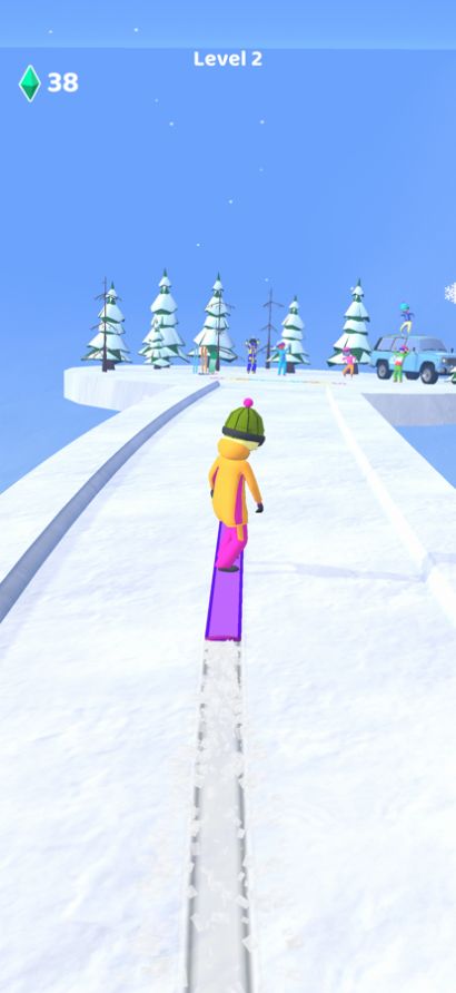 3、激情闯关冒险,不断挑战,提高角色的滑雪技能,让闯关变得更加容易。