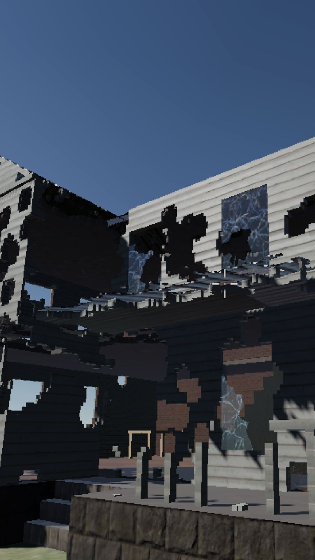 1、精致3D立体风格塑造的场景,看到房屋拆迁时这些立体像素的破坏和拼接。