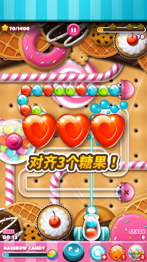 1.可爱的主题也有很多彩色背景,必须准备好尽快瞄准不同颜色的球。