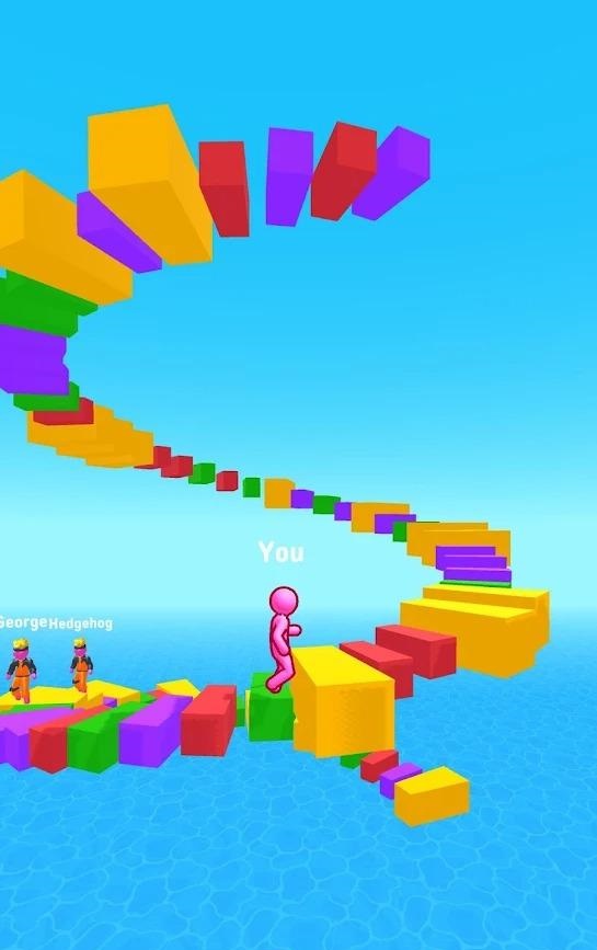 3、通过对应颜色的楼梯来进行行驶,让自己顺利的到达终点。