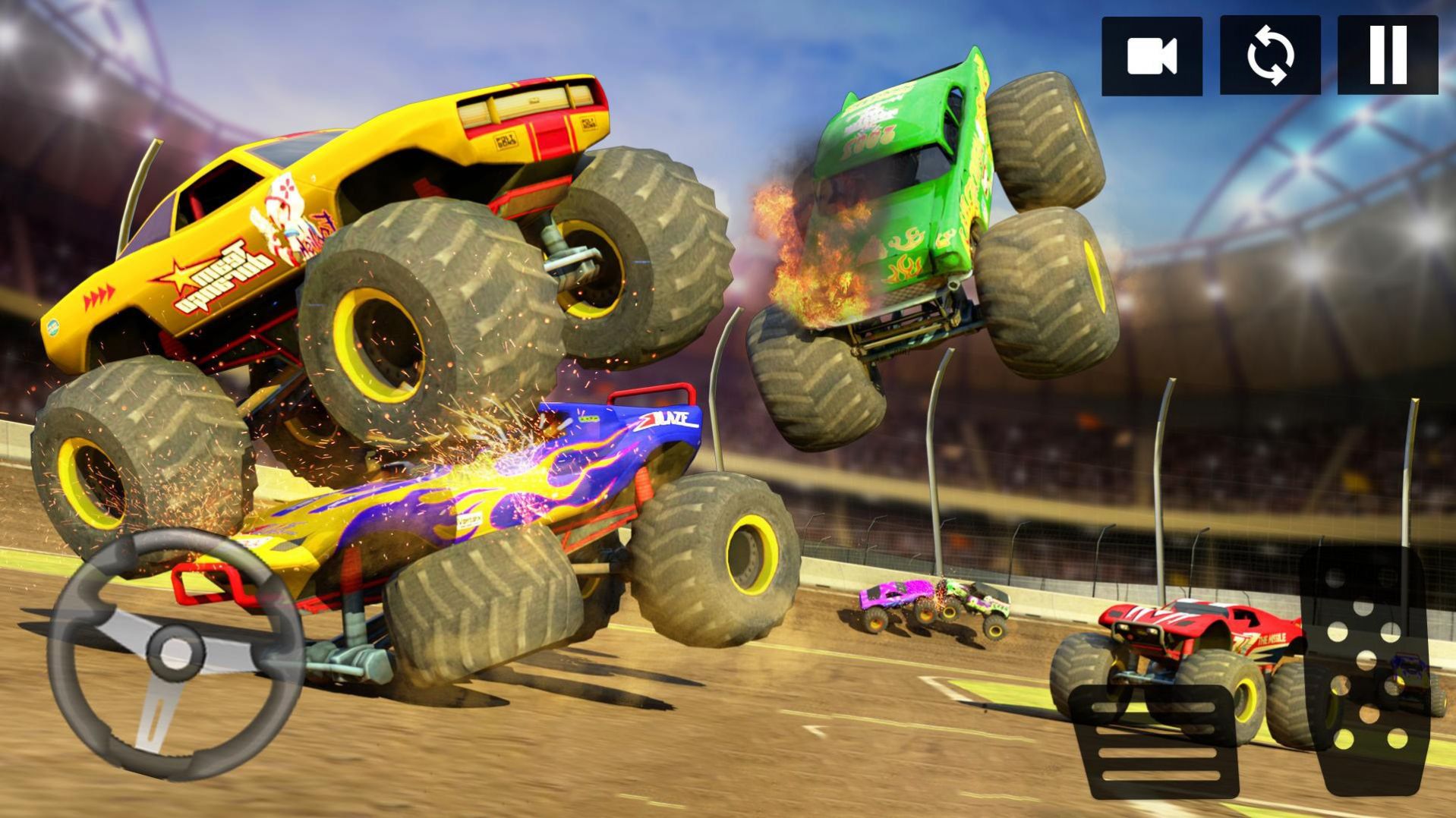 2、开局一辆普通怪兽车,你需要展现出你的驾驶能力,避开敌人的撞击,同时绕后反撞敌人;