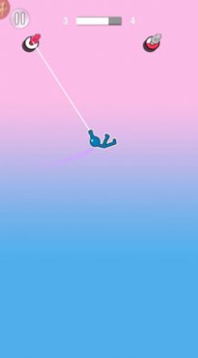 1、游戏简单易上手,手指点击就可自动扔出绳索。