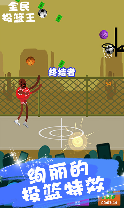 全民投篮王游戏保持正常动作就很好,比拼分